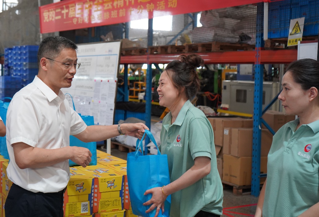 會前,高秉學走訪、檢查了蘭溪墩頭制刷與恩澤惠隆制刷企業廠區,慰問一線崗位員工。