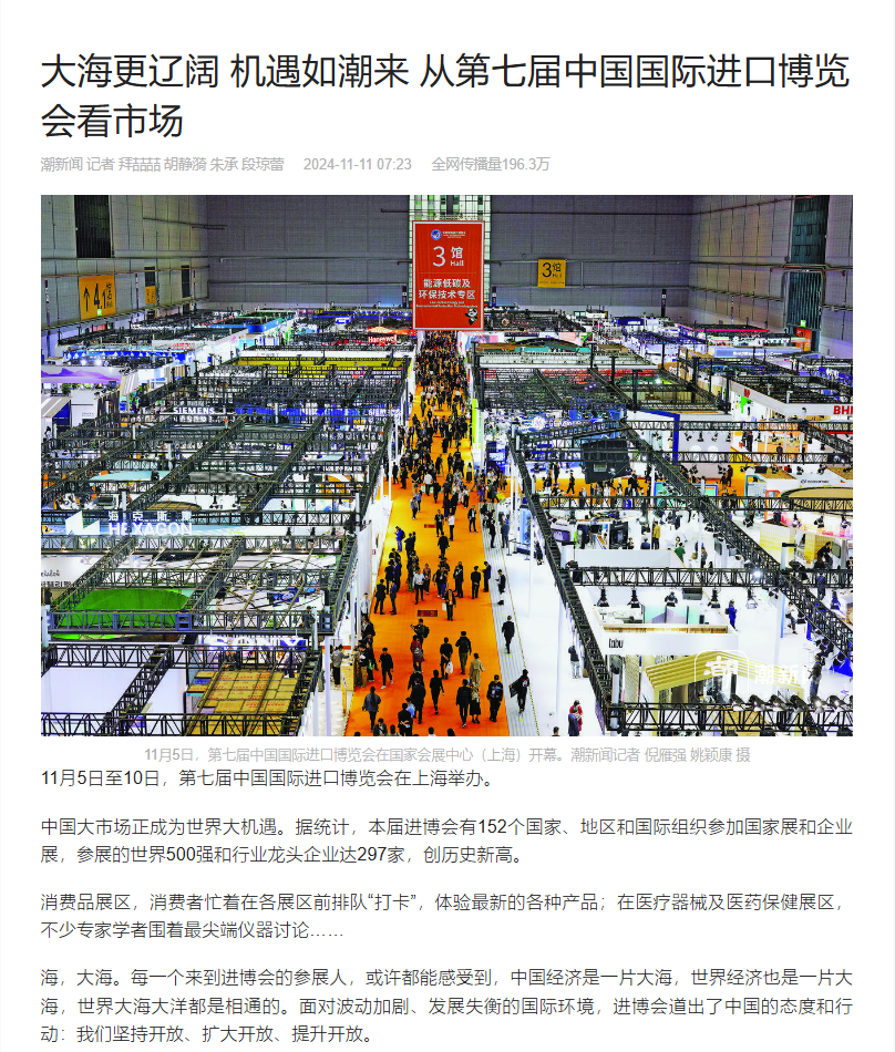 11月5日至10日,第七屆中國國際進口博覽會(進博會)在上海國家會展中心舉辦。本屆進博會以“新時代,共享未來”為主題,吸引了來自152個國家、地區和國際組織的參展商。浙江土畜組織旗下6家企業的30余名代表積極參會。浙江日報、潮新聞、浙江衛視、浙江國資等多家媒體對浙江土畜參會進行了報道。