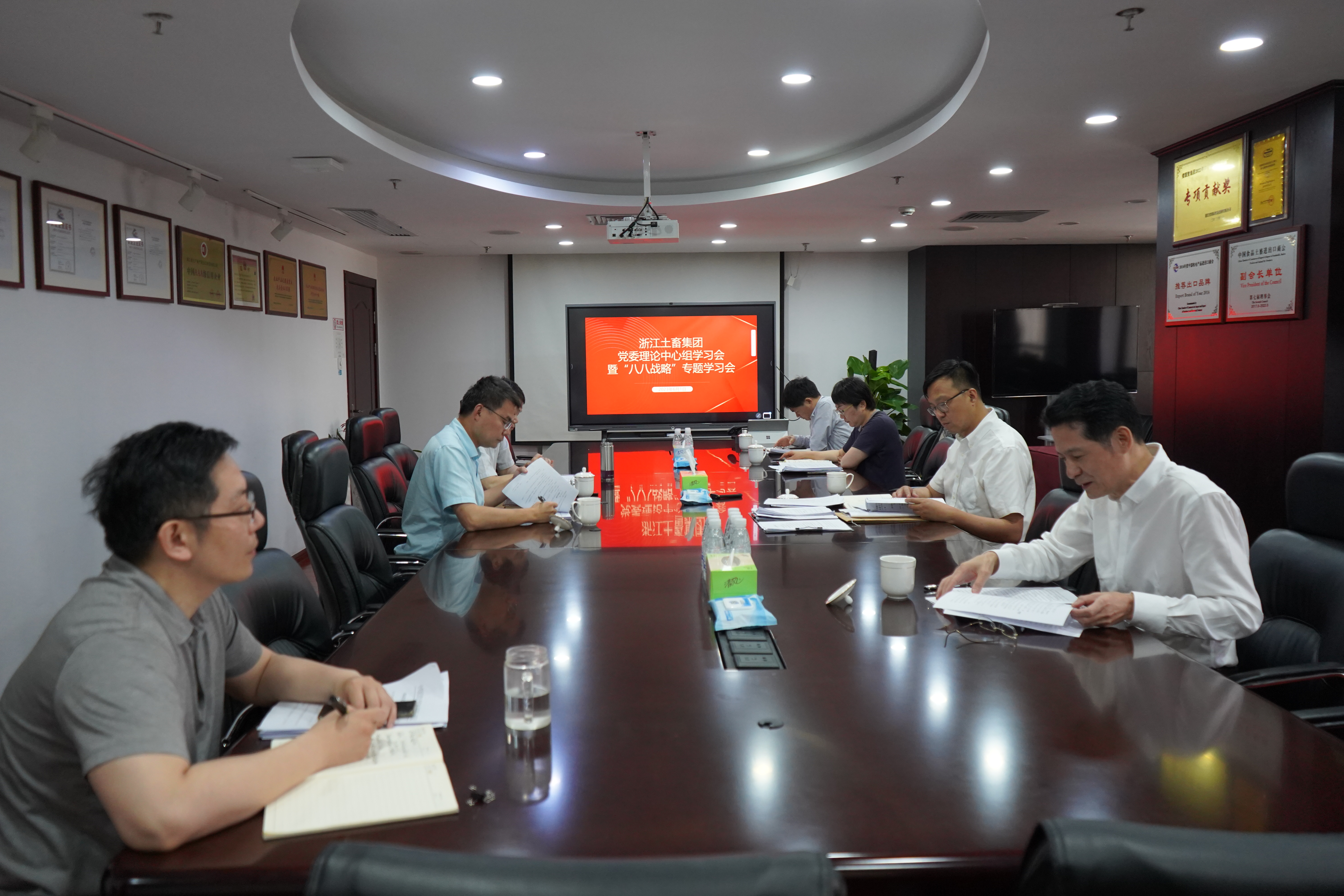 6月1日,浙江土畜黨委理論學習中心組召開主題教育“八八戰略”專題學習會,深入學習領會“八八戰略”、“千萬工程”經驗和“浦江經驗”、“樹立和踐行正確政績觀”以及習近平總書記在浙江工作期間對國資國企的重要論述。公司黨委理論學習中心組成員參加會議,黨委書記、董事長張斌主持會議。